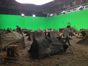 「切膚之歌」難民營拍攝選擇使用電腦特效後製背景而非實境取景拍攝多少降低了畫面真實感。© bombero int. / Pandora Film Verleih 2014