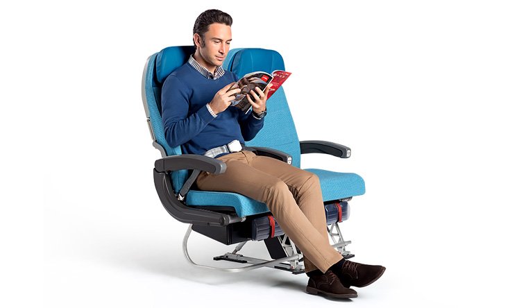 座位大小前後距離合宜,以亞洲人的身形來說算是OK的,並不會讓人有過於擁擠的感覺,但回頭看後排的三位土耳其大叔是擠得有點可憐(呼籲大家注意身材維持)。每到用餐時刻,空服員也會細心提醒每位旅客豎起椅背以免造成後方乘客用餐不便。頭部也可以自行凹折調整角度,怕睡倒在別人身上的話可以好好利用。