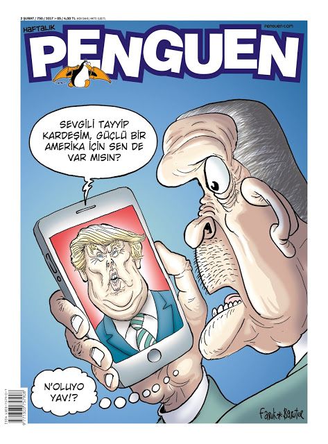 如果說看到這兒還是覺得「埃迪爾·亞夏歐盧」這名字太陌生的話,那《Penguen企鵝漫畫雜誌週刊》應該就有印象了吧?這本漫畫週刊是埃迪爾和友人賽爾柱·埃爾殿(Selçuk Erdem)共同打造的心血,內容貼近生活,包含國際時事和土耳其人文化特質等,的確都很戳中人們的笑點,因此一直以來都擁有廣大的死忠讀者。以前在路上的小攤販、各大書店等地方都有販售,網路上的轉發分享更是頻繁,紅的不得了。
