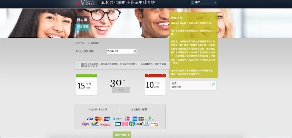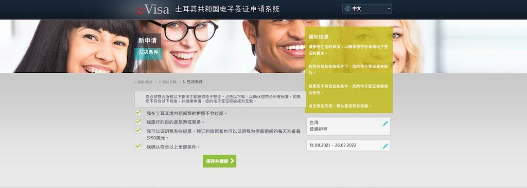 申請網站:www.evisa.gov.tr