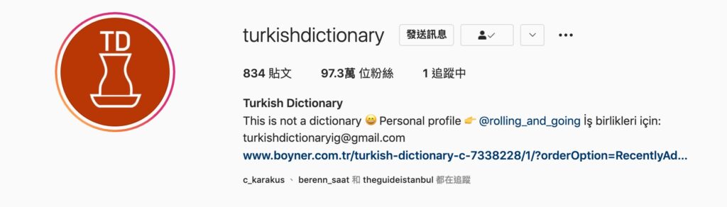 土耳其人做的英文IG跟上就很融入土耳其當地情況的「Turkish Dictionary @turkishdictionary」