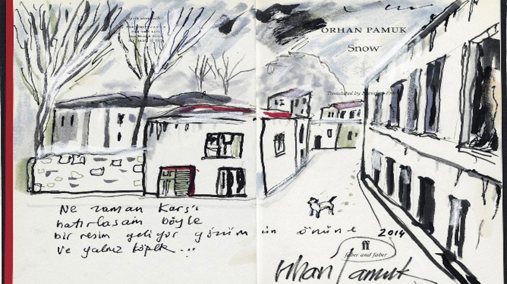 讀者們若有追蹤帕慕克作品,一定不會忘記政治批判小說《雪》主角卡在土耳其東部卡爾斯(Kars)所發生的具詩意且饒富宗教哲理的故事,沒錯!美國的收藏家也難以忘懷,今年12月初在美國紐約由佳士得(Christie’s)取名為「首版再思」(First Editions / Second Thoughts)拍賣會中集結61位美國知名作家與14位來自世界各國的作家的重要作品手稿加上最新註解,所得捐獻給美國筆會(PEN America)。我們的奧罕‧帕慕克提供了首版《雪》手稿與手繪封面,以13,000美元高價售出,花大錢買珍品,收藏者腦袋裡的怪念頭也真不是一般人可參透的。(資料來源)