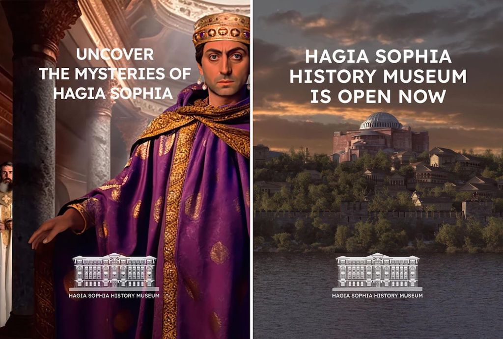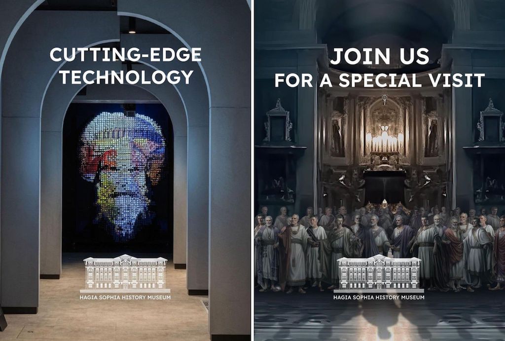 接着会由工作人员引导搭乘电梯开始至一个一个展间来参观,每个展间会有不同的主题,交代圣索菲亚的背景与兴建历程,每个时期在建筑上的改变或者是随着伊斯坦堡主人更替各种用途与参与者,前世今身交代得清清楚楚,不是播放影片,是带有3D效果的动态影像,提供一些官方宣传照给大家想像一下: