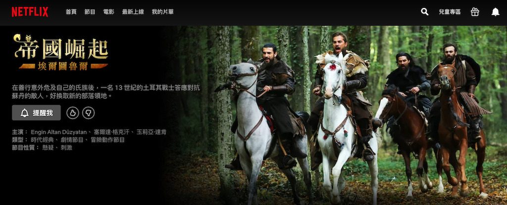 目前,可以在《埃爾圖魯爾》Youtube官方頻道上,免費觀看第一季與第二季的全集,唯一可惜的是,標配是英文字幕,適合英語速讀或者具備土耳其語基礎的讀者收看。在Netflix特殊頁面能看見《埃爾圖魯爾》第五季內容,直接搜尋是無法找到,但目前還沒有辦法觀看,可以先按下提醒我等待,Netflix上如果釋出應該是有中文字幕,會更容易些。