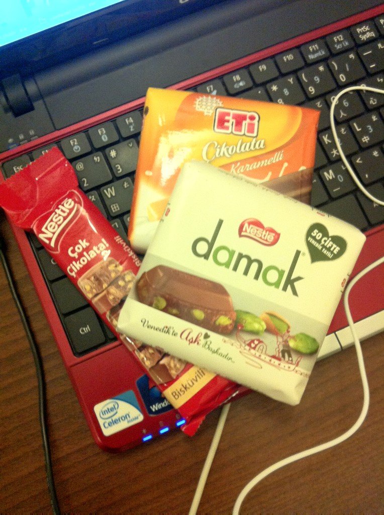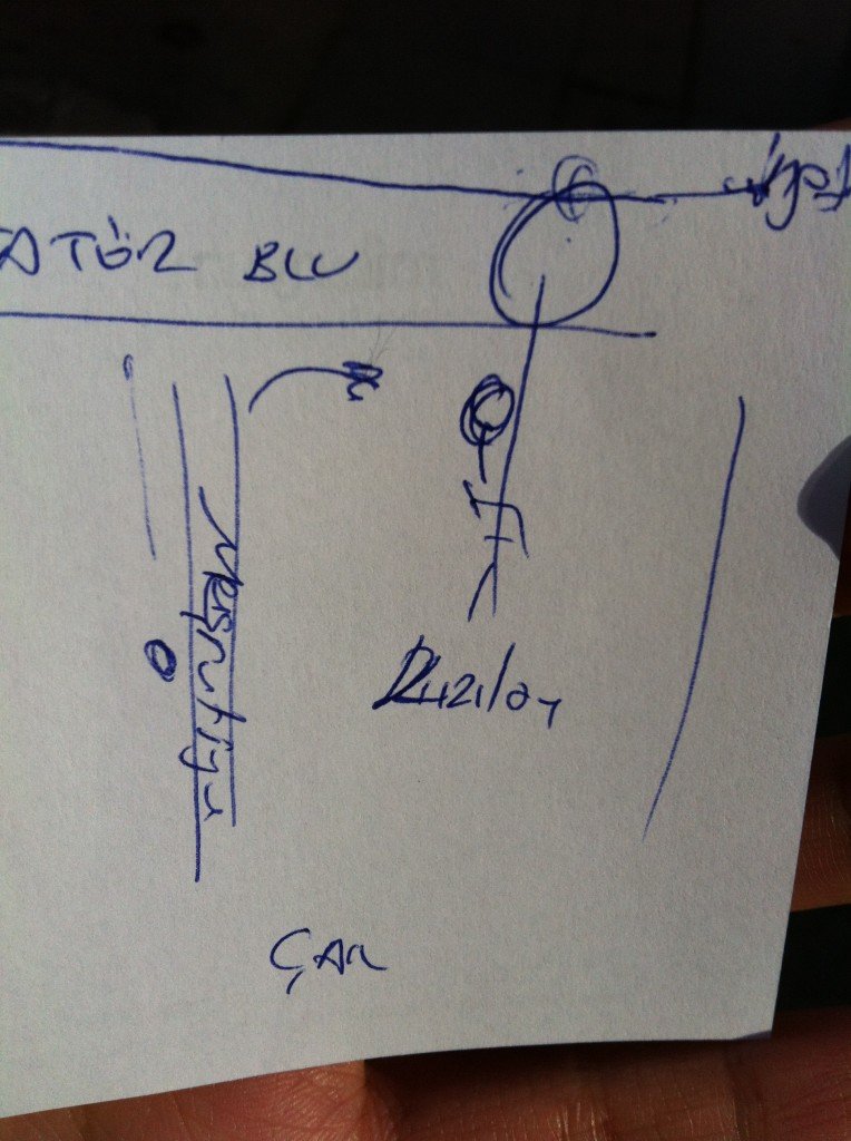 還有我之前要在當地開戶,可是因為是外國人一直被銀行刁難,一早超級可愛的警衛杯杯還畫地圖給我,雖然根本阿塔突克大道(安卡拉的忠孝東路)走九遍以上來來回回狂跑,跟我要一堆資料我要去各地申請,但是看到這種可愛的手繪圖還是覺得超級窩心,然後我在路上遇到Büfe(下圖)就狂吃巧克力棒,成就我一天的小確幸。